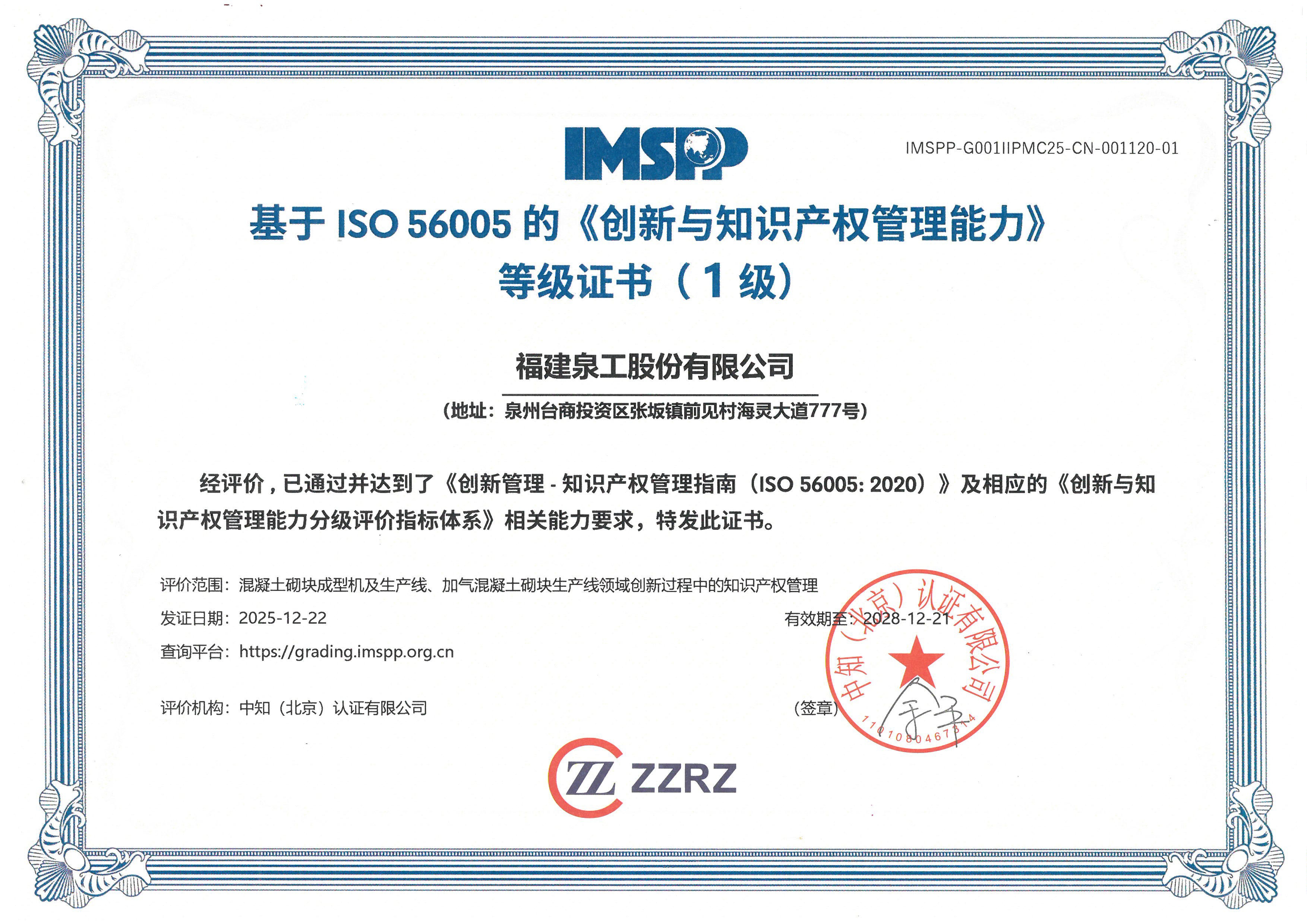 此次獲得ISO 56005等級(1級)證書,標志著泉工股份在創(chuàng)新與知識產(chǎn)權(quán)管理方面邁出了重要步伐。泉工股份將繼續(xù)致力于推動企業(yè)創(chuàng)新能力的提升,進一步優(yōu)化技術(shù)研發(fā)與知識產(chǎn)權(quán)保護,為全球市場提供更加高效、綠色、智能的建材裝備與服務(wù)。